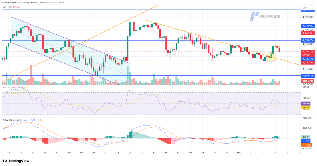 以太坊已突破近期下行趨勢阻力位,標誌著其近期技術結構顯著轉變。先前,以太坊經歷了一段盤整期,期間交易區間收窄,顯示下行動能正在減弱。突破先前一系列較低高點,並突破近期重要高點,預示著潛在的看漲趨勢反轉正在發生。