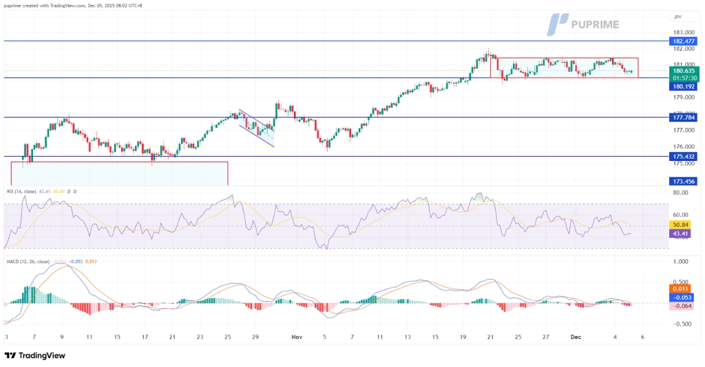該貨幣對的近期走勢取決於其與 180.20 水準的互動。若持續跌破該支撐位,可能引發加速拋售,目標指向下一個重要支撐區域 179.50。相反,若從該水平強勁反彈,則將維持目前的區間震盪結構,初步阻力位預計在 180.80。交易者應密切注意收盤價是否確認跌破 180.20,將其視為市場結構轉為看跌的關鍵訊號。